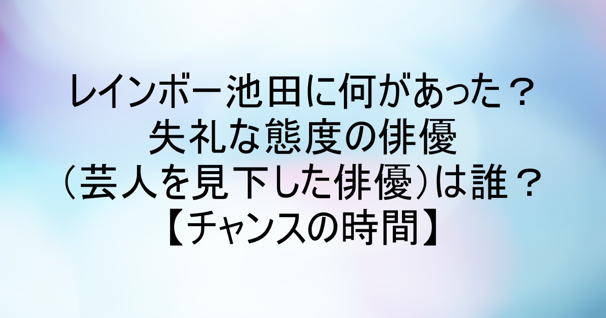 - 池田直人さんは『チャンスの時間』で、下積み時代に受けた「俳優からの失礼な態度」を告白