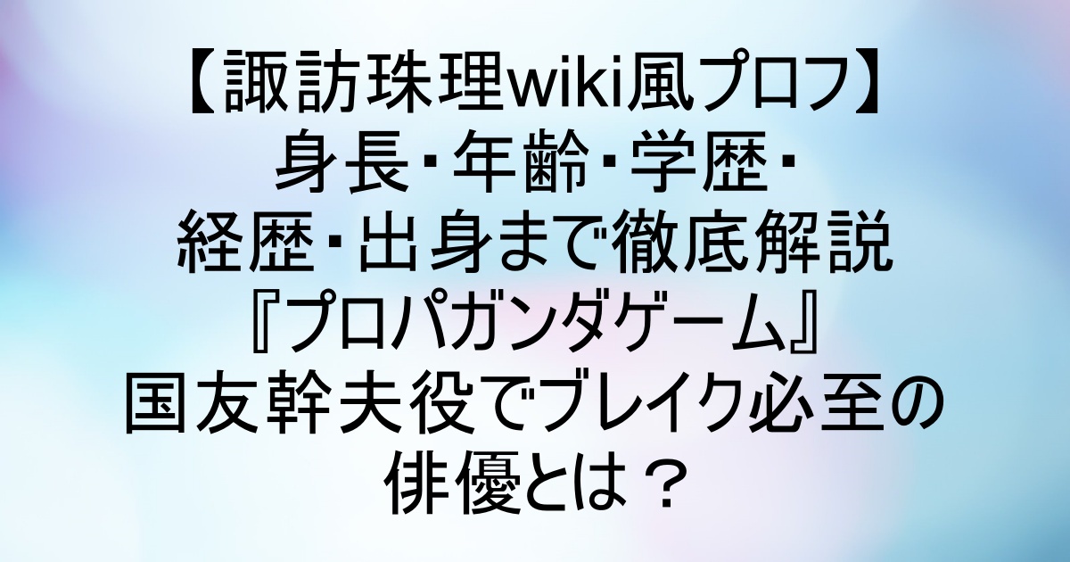 【諏訪珠理wiki風プロフ】身長・年齢・学歴・経歴・出身まで徹底解説|『プロパガンダゲーム』国友幹夫役でブレイク必至の俳優とは?