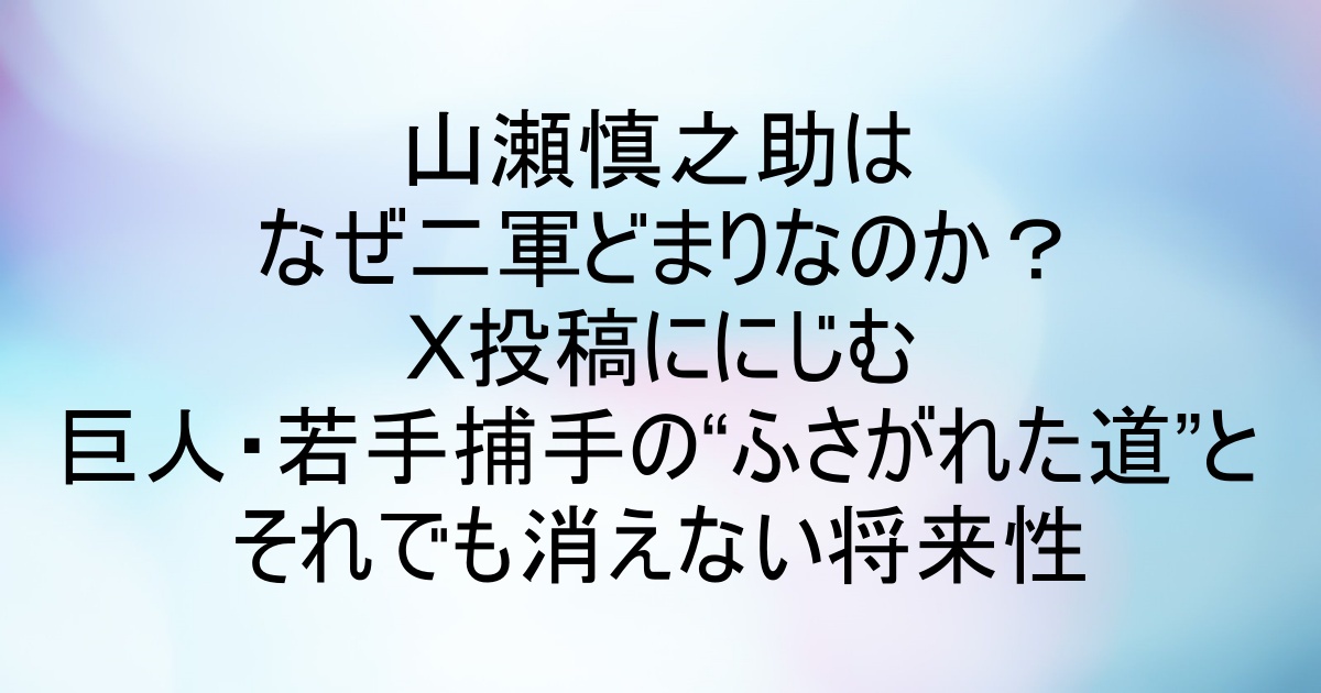 - 山瀬慎之助は、単なる「二軍どまり」ではなく、巨人の分厚い捕手陣とチーム事情にふさがれている若手捕手。