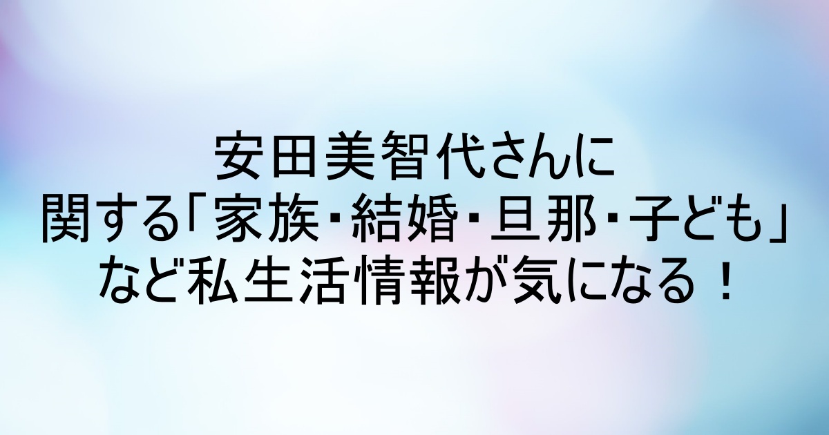 テーマは「家族・旦那・子ども・結婚」という切り口で、安田美智代さんの人柄やキャリア、そして“情報が非公開であること”の意味も含めてお届けします。